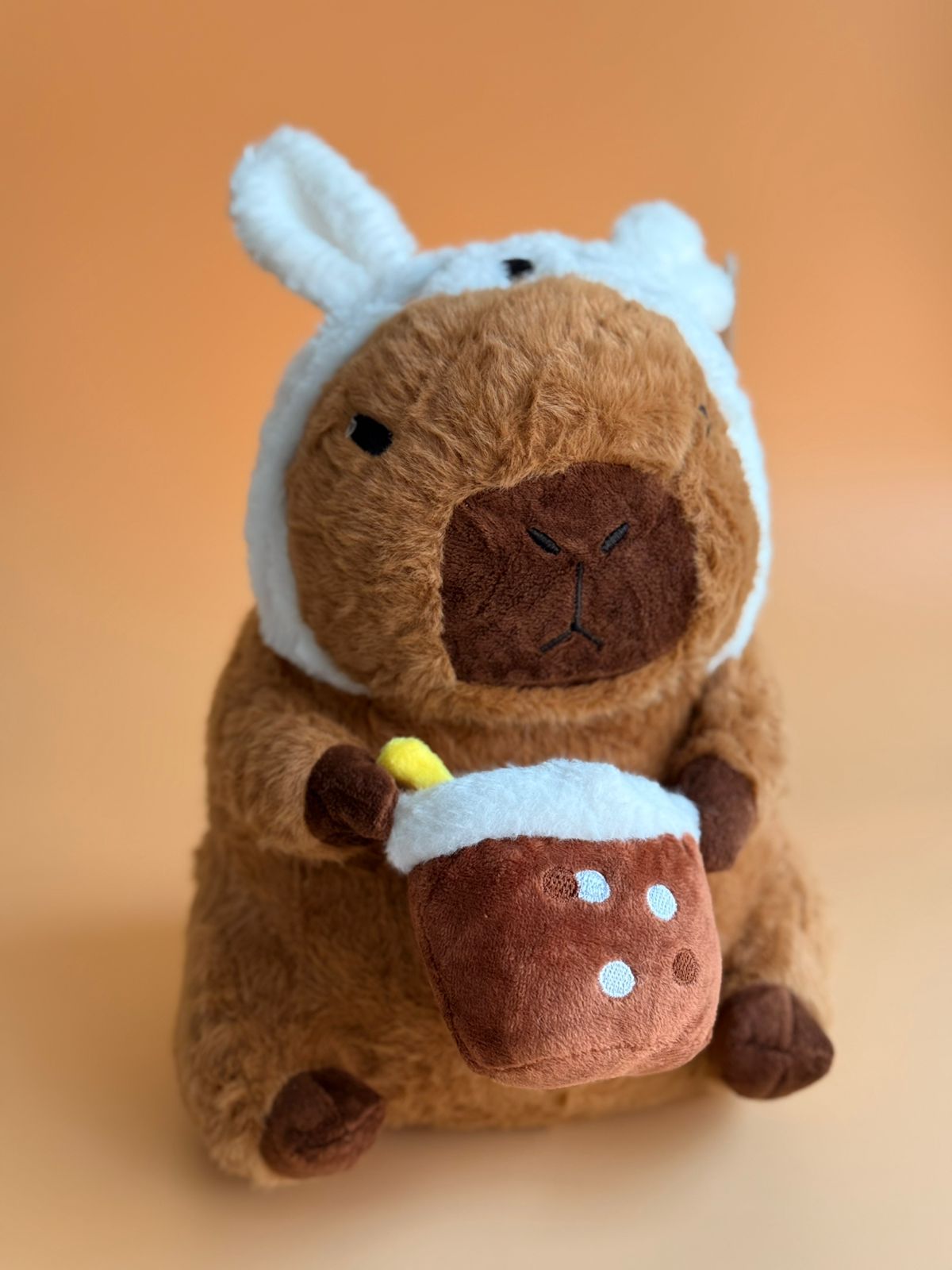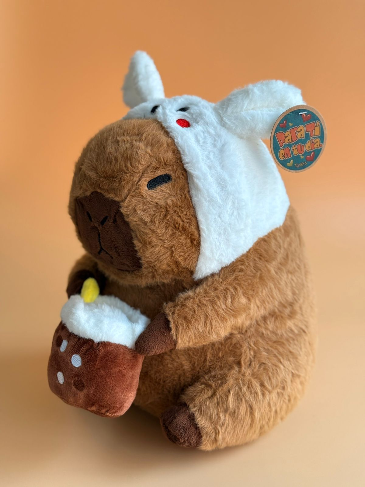 Conoce a nuestro adorable capibara disfrazado de conejito, el peluche más tierno y suave que conquistará corazones. Con sus 30 cm de altura perfecta, este amiguito peludo es ideal para abrazar y acariciar. Su disfraz de conejito le da un toque irresistiblemente cómico y encantador. Perfecto como regalo para niños y coleccionistas que aman lo peculiar y adorable. ¡Un compañero suave y acogedor que promete muchas sonrisas!
