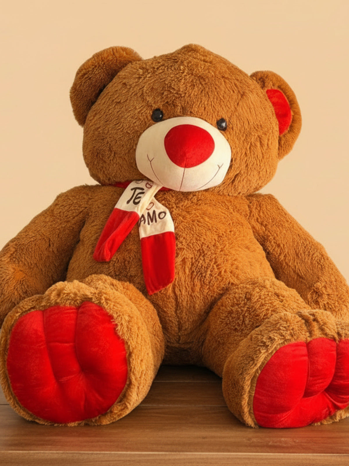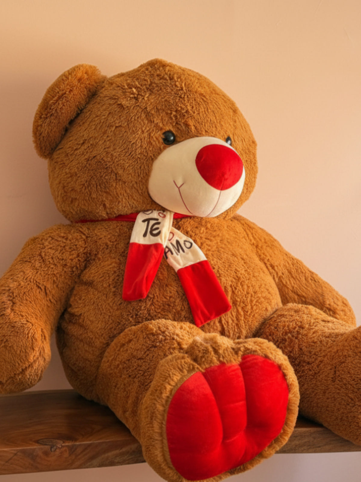 Osito Simón es el compañero perfecto para regalar en estas fechas especiales. Con su tamaño generoso de 1 metro sentado y 1.50 metros de altura cuando está parado, este peluche se convierte en un abrazo gigante lleno de amor. Su distintiva bufanda bordada con un "Te Amo" expresa los sentimientos más profundos, haciendo de cada momento un gesto romántico y memorable. Ideal para sorprender a esa persona especial, decorar un espacio o crear recuerdos inolvidables. Un regalo que trasciende lo ordinario y toca el corazón.